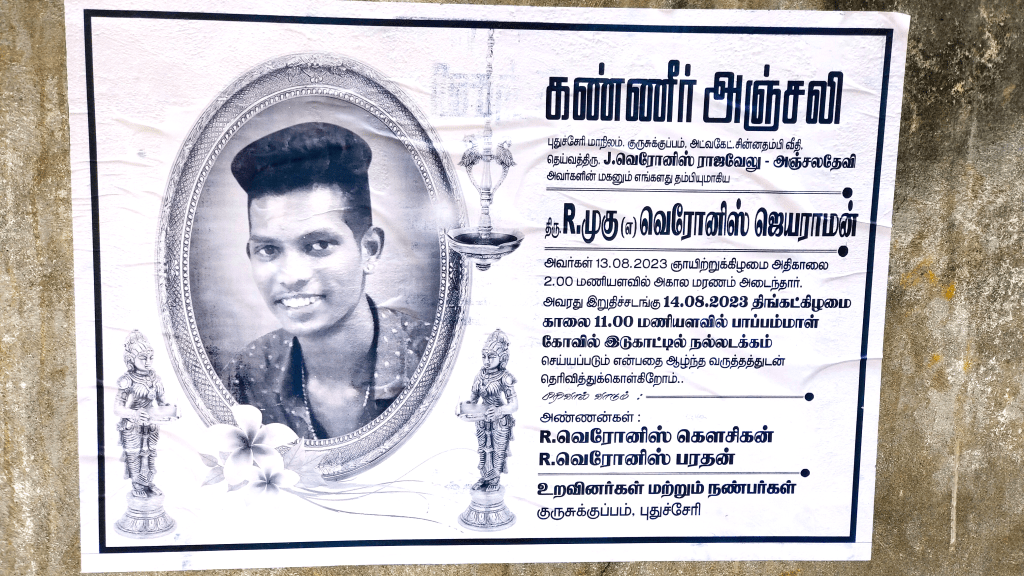 The poem above is a representation of a real conversation I had with Mugu on the other side, me in my bed in trance picking up on his thoughts, my muse putting them in its words, and me sending him the thoughts the of the poem. They probably came into his mind in Tamil and disguised as his own thoughts, but different ones than the ones that he was having, and there would be something about them that would make him question if there were not from me, or at least not his own, someone trying to help. In his abject despair, it would be hard for him to believe that. I will keep trying. The poem resulted from me sitting next to his body for about an hour, clearing my mind and letting him in. Earlier, a couple of hours after his death, right at the beginning of dawn, I had a very quick vision of him sitting in some small space, hidden from the large warehouse-like room it was a part of, with his knees drawn up to his chest, his face down on his knees. He was in shock. I only had time to say, “There you are!” before the dream vision ended.