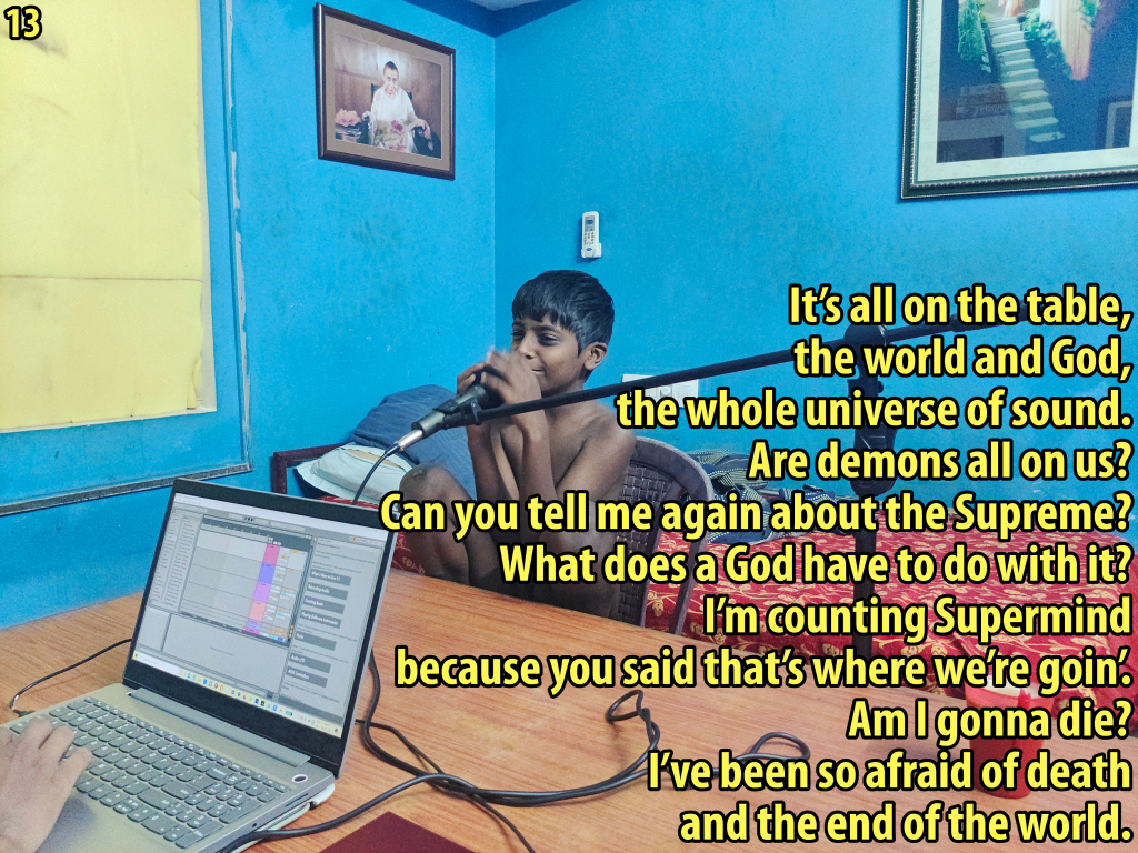To get the pictures Donny and I went to a place in town called Harpagon Workshop, which is a department of the Sri Aurobindo Ashram, and which has a very large photo gallery with thousands of pictures of Sri Aurobindo and the Mother of all different sizes. In addition to shopping for the satsung room, I was also on the lookout for one more picture for my room, one that would be directly across from me as I’m sitting in my chair. Shortly after we arrived at the gallery one picture really popped out at me of the Mother standing at the top of a staircase. I was drawn strongly to the picture, and thought it would be good one for my room.