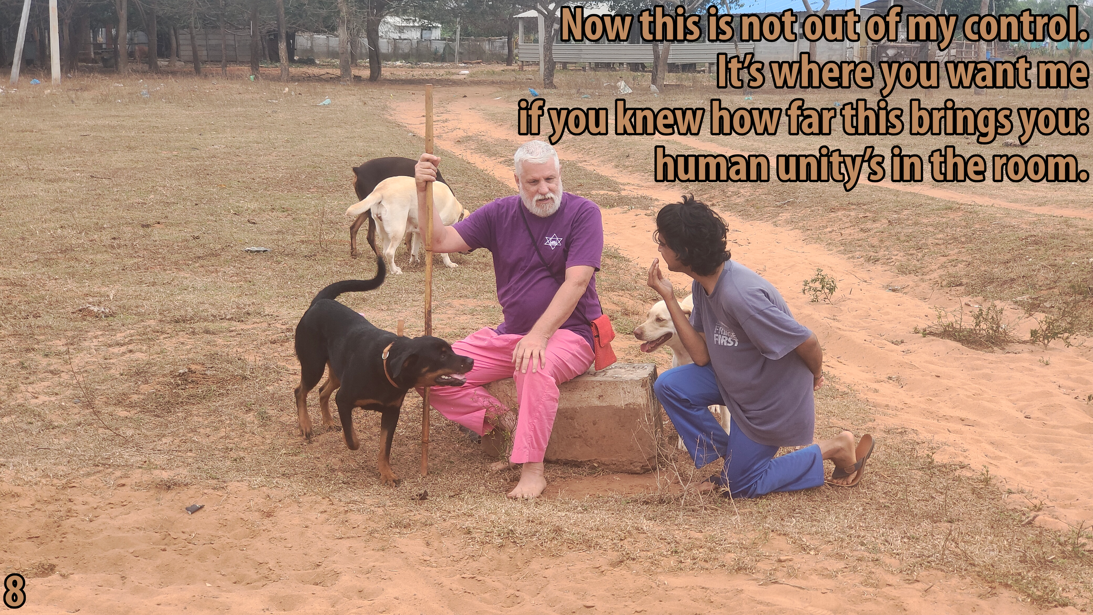 Later on, as Donny and I were admiring the picture newly hung on my wall, he told me that this particular photo was the first image he ever saw of the Mother. It had been on the cover of a book called The Sunlit Path, which is a compilation of the Mother’s writings. I was also already familiar with the photo as well as that book, but Donny told me something I didn’t know about it, and that was that it was taken on the Kali Puja day when the Mother came down the stairs, and then gave blessings to all the ashramites. I found that very interesting since I had drawn the card that represents Mahakali1 that day from The Eternity Game, and I took it as confirmation that this indeed was the photo that was needed for my room. I also thought this could herald more involvement from that particular aspect of the Divine Shakti in my sadhana which is good news since the name of that card in The Eternity Game is ‘Power’ and its aspects are ‘Transformation’, ‘Rapidity’ and ‘Height.’ In the description of the card Medhananda states that: